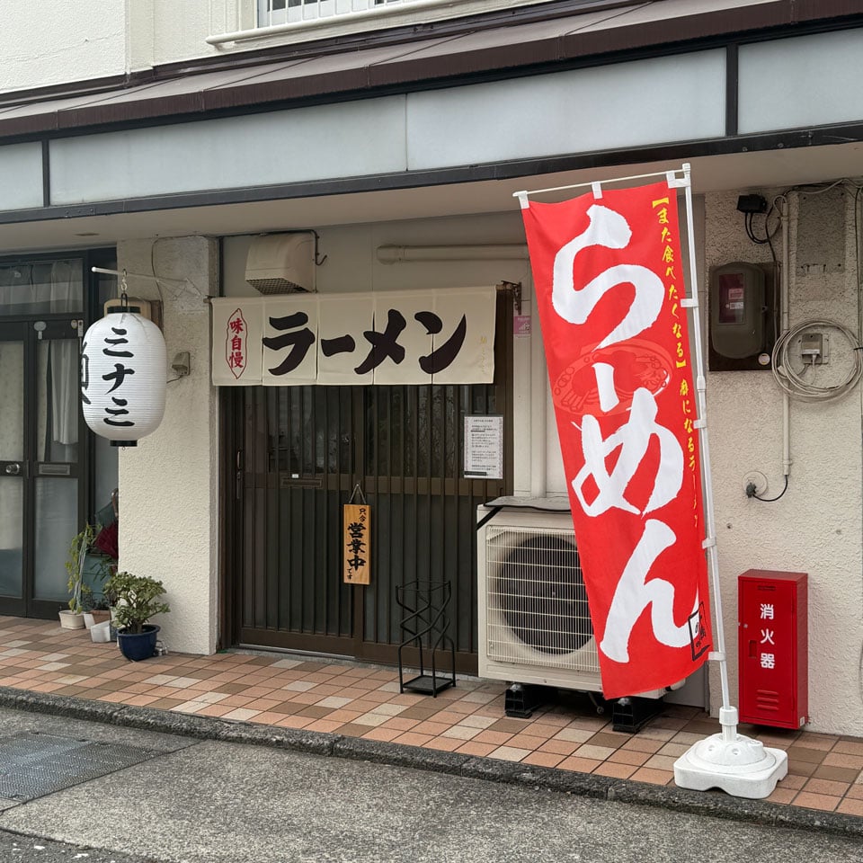 静岡駅の南口から歩いて10分ちょっと。「大坪町」バス停から歩いて2~3分のところにあるラーメン店「麺ミナミ」。